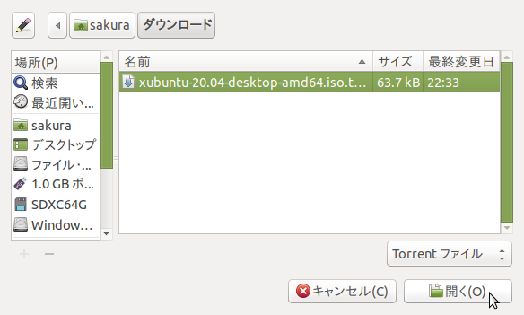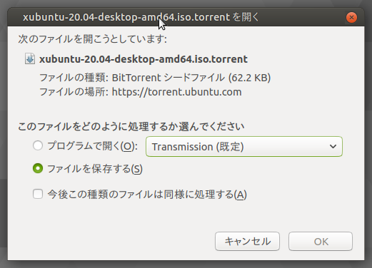 XubuntuサイトでFirefoxを使ってBittorentファイルをダウンロードしました。