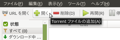 - ダウンロードしたTorrentファイルを選択し開くボタンをクリックします。