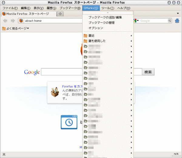 GMarksをインストールしFirefoxを再起動すれば利用できるようになります。