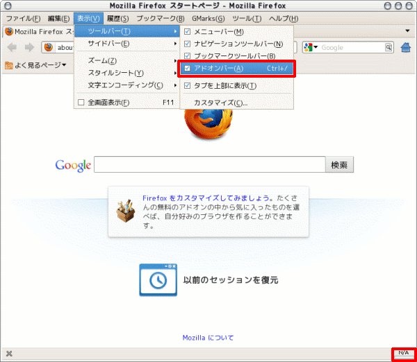 アドオンマネージャは、以下の操作で表示できます。