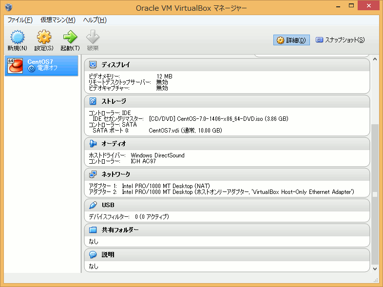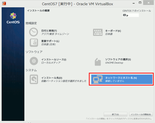 CentOS7をVirtualBoxにインストールしてみた†