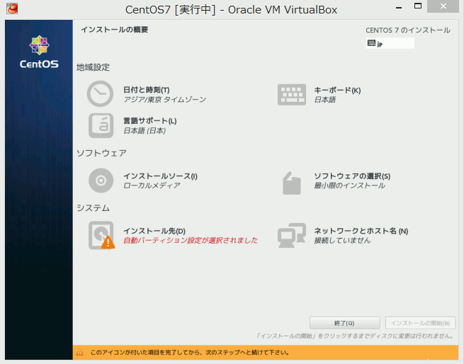 CentOS7のインストール†