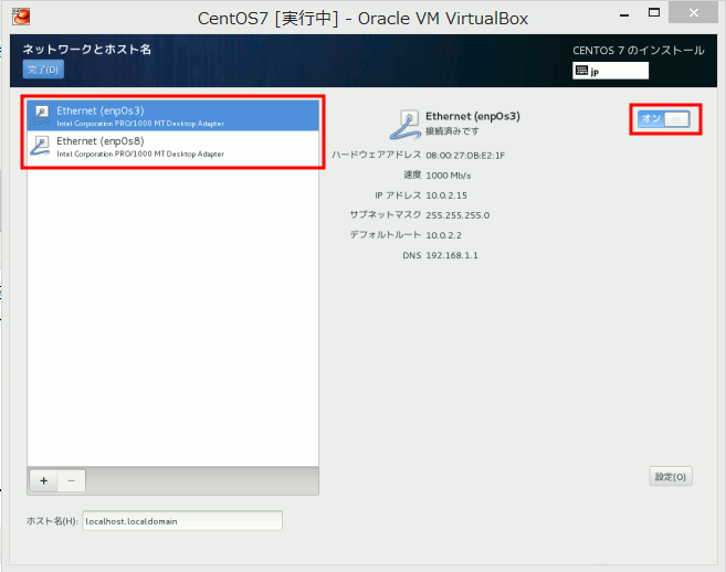 - 両インタフェースをONにしました。(ネットワークアダプタ&ホストオンリーアダプタ)