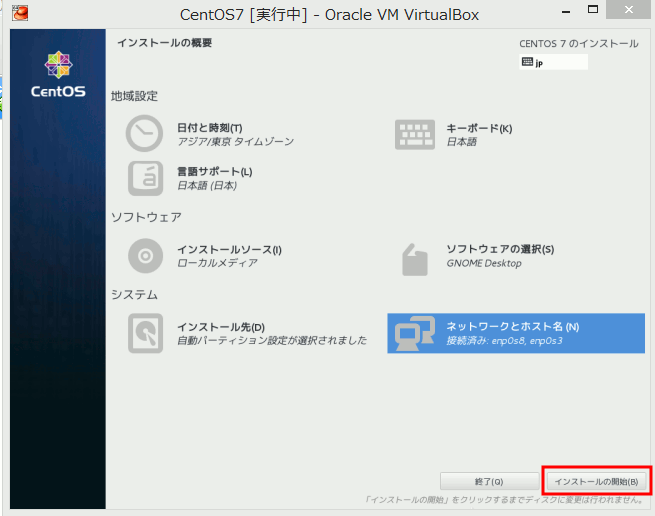 以上、CentOS7のインストールでした。
