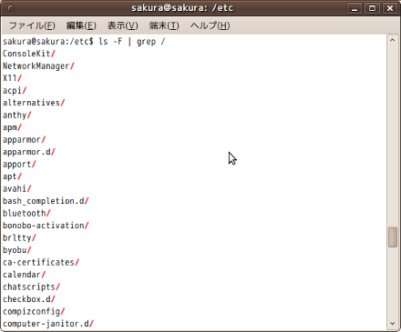 lsコマンドを発行するとディレクトリとファイル名の混在で表示されますね。 ディレクトリのみ表示したい場合は以下のコマンドで実現できます。