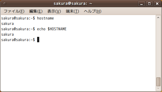 hostnameコマンドまたは環境変数の$HOSTNAMEで確認することができます。