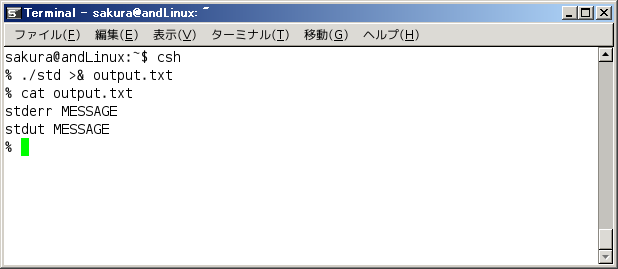 以下の実験で使用したシェルはbashになります。cshでは意図した動作になりませんのでご注意ください。