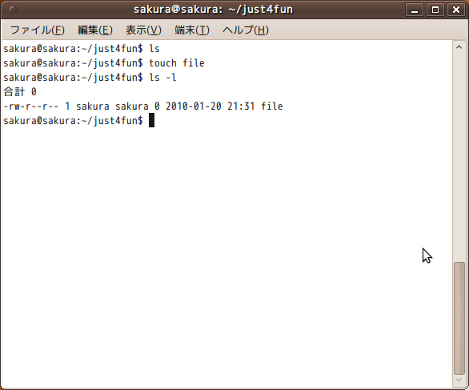 下記の例はfileという0バイトのファイルを作成します。