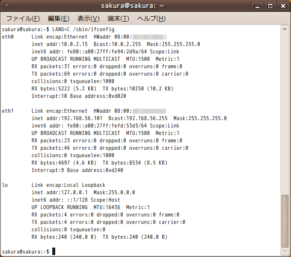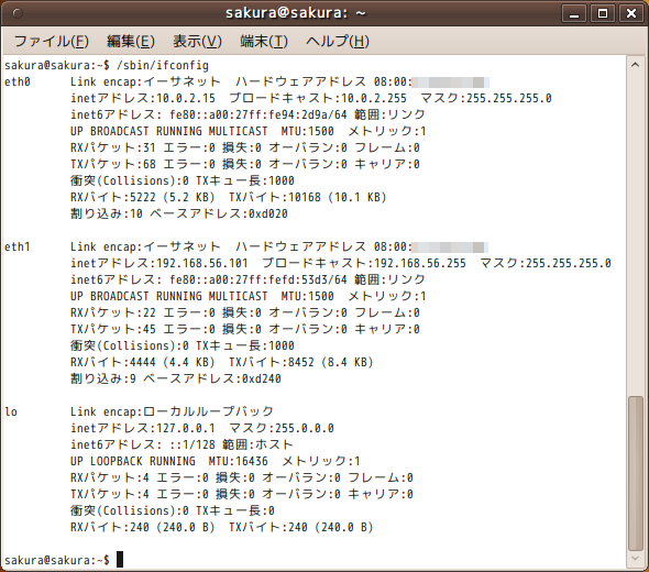 最近のLinuxでは、ifconfigからipコマンドに置き換わっています。