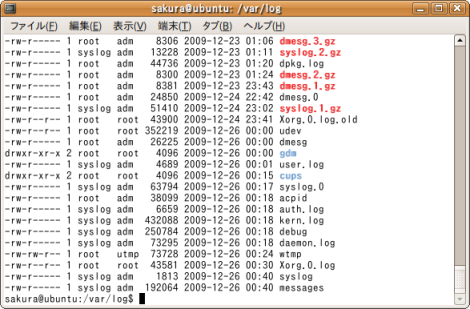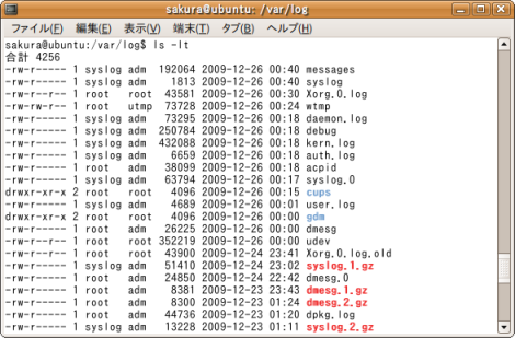 ls -ltを実行すると更新日時が新しいものから表示される。