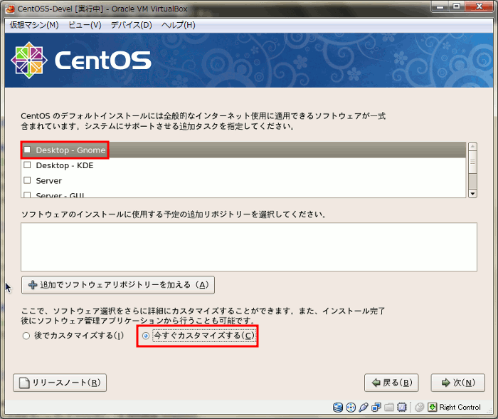 - デフォルトでチェックが入っているDesktop - Gnomeを外します。