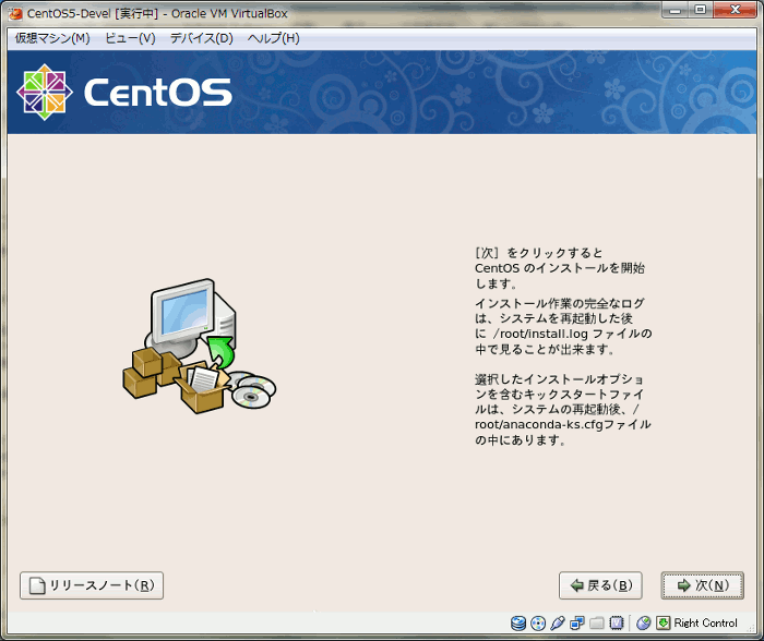- CentOS 5のインストーラー起動画面です。