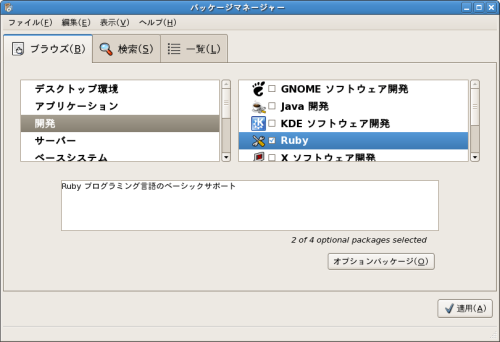 下図のグループ化されているパッケージ群をコマンドによりインストール、アンインストール、検索する方法を記します。