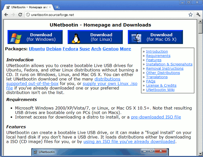 今回、この記事はWindowsでUNetbootinを起動しUSBメモリを作成作成しましたが、Mac OS X, Linux版も提供されていますので、皆さんが所持している環境(OS)のUNetbootinを使用すれば同様のことができます。
