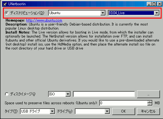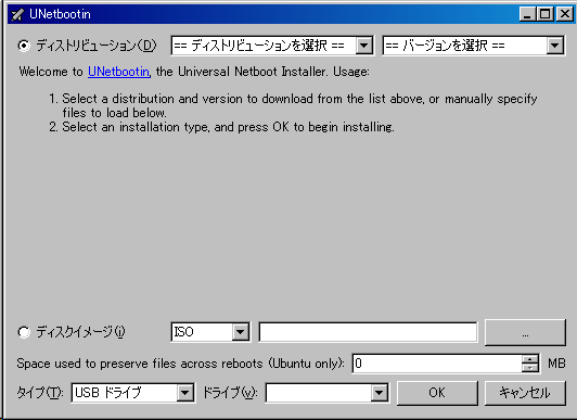 UNetbootinというソフトを利用することによりUSBメモリからインストールイメージをブートすることができるようになります。