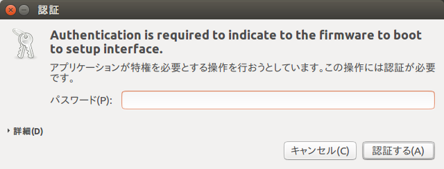 以下のコマンドにより、UEFI(BIOS)画面を表示することができます。