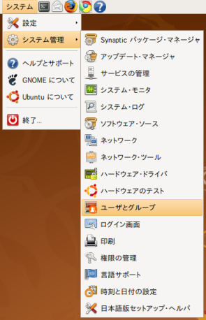 「システム→システム管理→ユーザとグループ」を選択します。