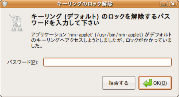 無線LANなどキーリングへ登録している場合、以下の画面が表示される場合があります。