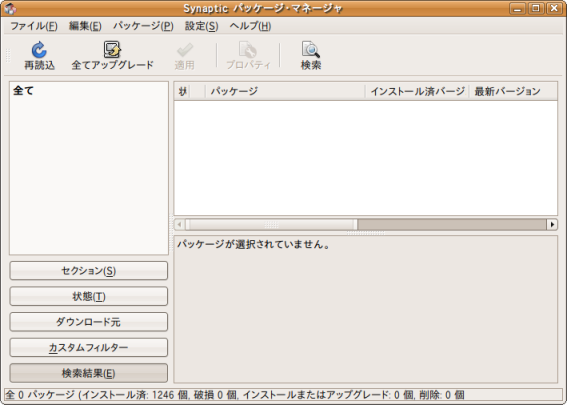 Synapticパッケージ・マネージャー起動画面
