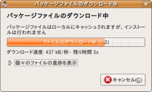 以下、ダウンロード画面です。この後インストール中の画面になります。
