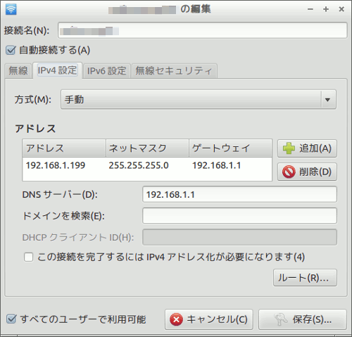 当方の環境では、以下のように固定IPを割り当ててあります。