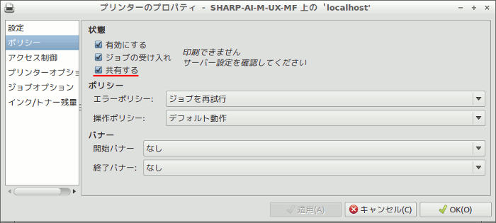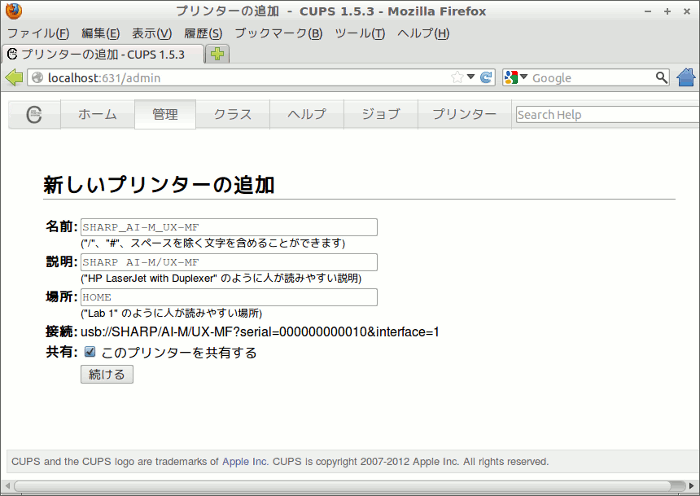 以上でプリントサーバ側に使うUbuntu側の設定は完了です。