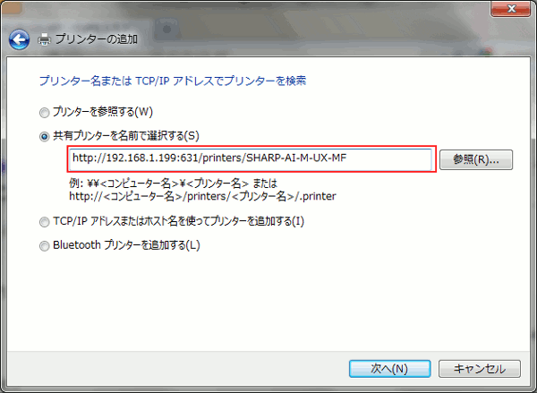 http://プリントサーバ/printers/キュー名ドライバがあれば自動的にインストールされると思いますが、私の環境ではプリンタ追加ウイザードが表示されたので、画面に従いプリンタドライバをインストールしました。