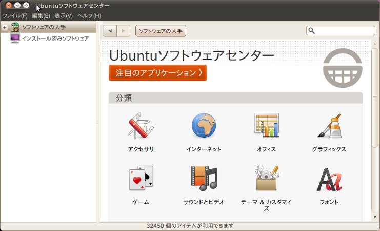 Ubuntuソフトウェアセンターを利用するとアプリケーションの追加が簡単にできます。