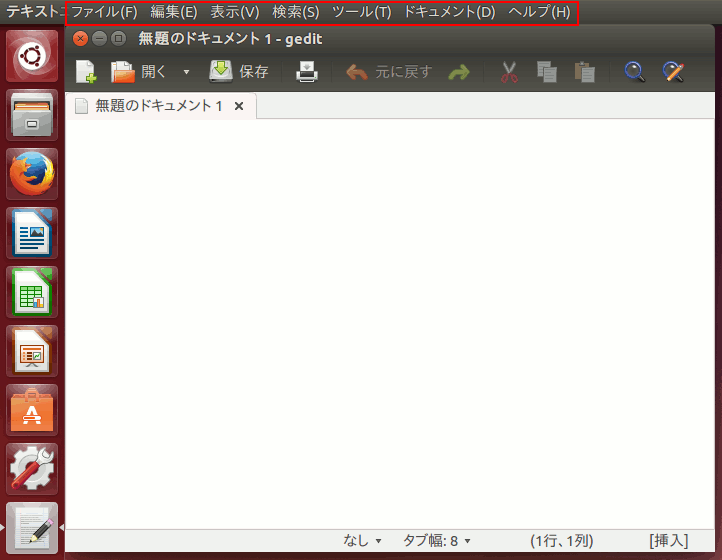 UbuntuのUnityでは、画面の上部がメニューとして機能していました。