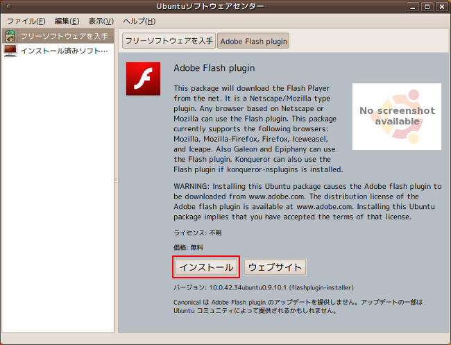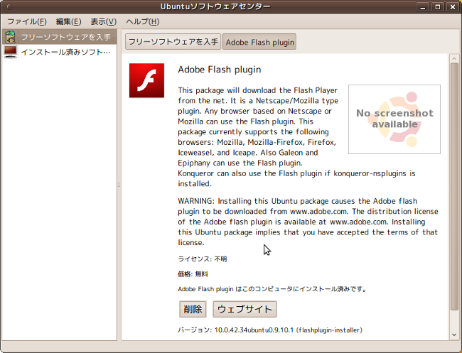 ubuntu9.10でflashプラグインをインストールする方法です。