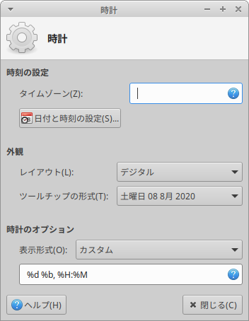 以上、Xubuntu(XFCE)で時計の表示形式を変更する手順でした。