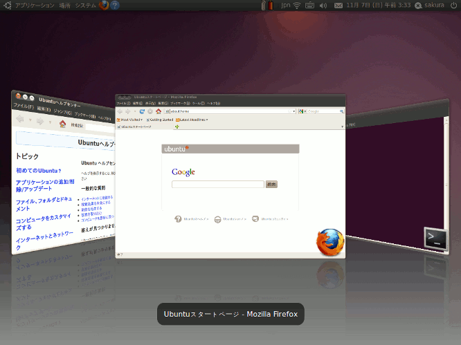 以下、視覚効果を有効にした時のスクリーンショットです。