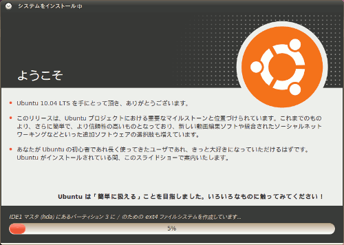 下図はインストール中のスクリーンショットです。