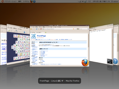 ubuntu9.10 ppcの動作画面です。視覚効果も有効にできます。